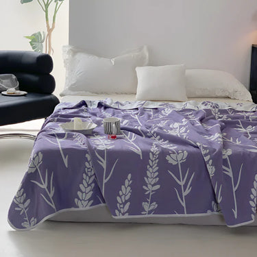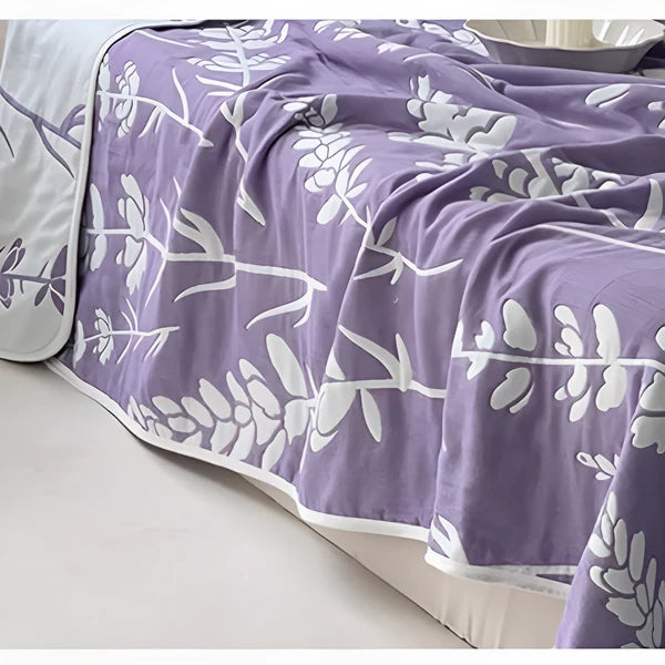 The Vionna Lavender Floral Cotton Blanket brings a touch of calm elegance to your home. Crafted from breathable cotton gauze with a gentle floral pattern, it offers lightweight softness that keeps you cool in summer and cozy in winter.